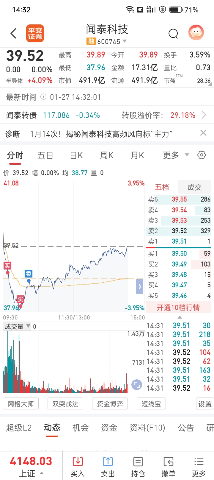$闻泰科技(SH600745)$ 大爷的,38.7卖了一千股