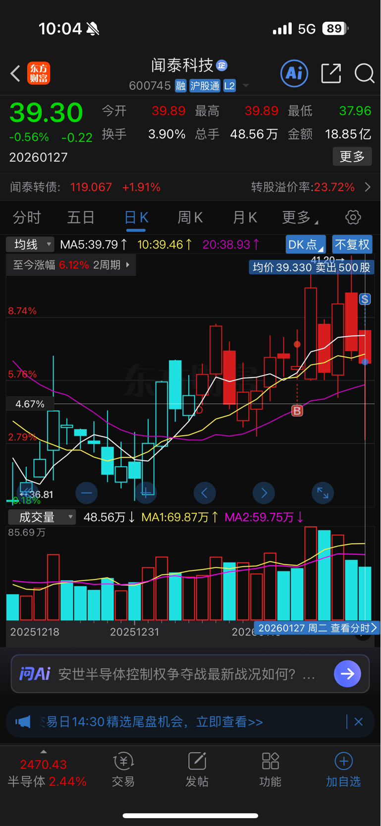 $闻泰科技(SH600745)$ 昨天纹丝不动,直接卖,卖了就涨,牛逼