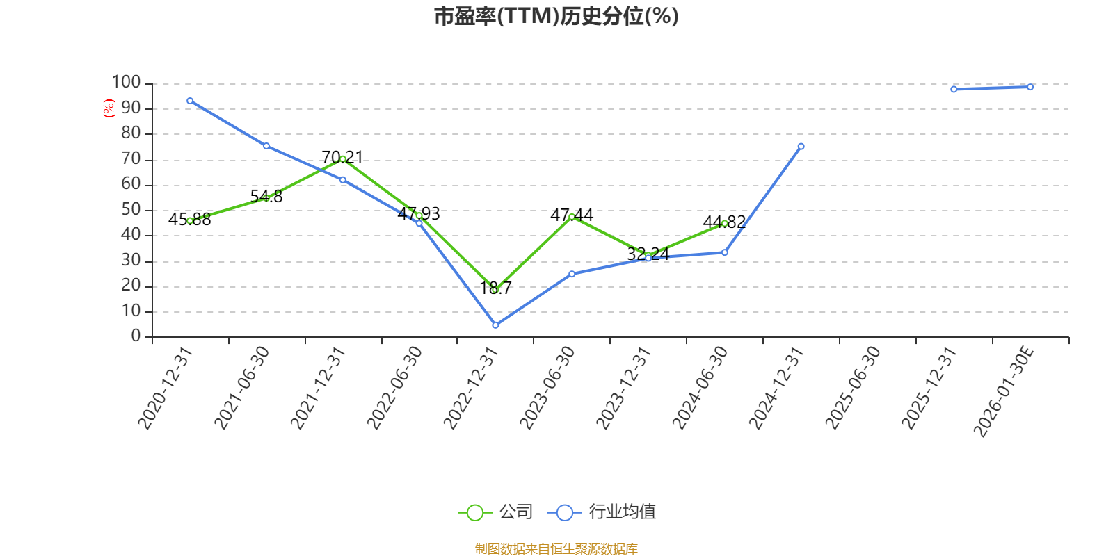 以本次披露业绩预告均值计算,公司近年市盈率(TTM)图如下所示: