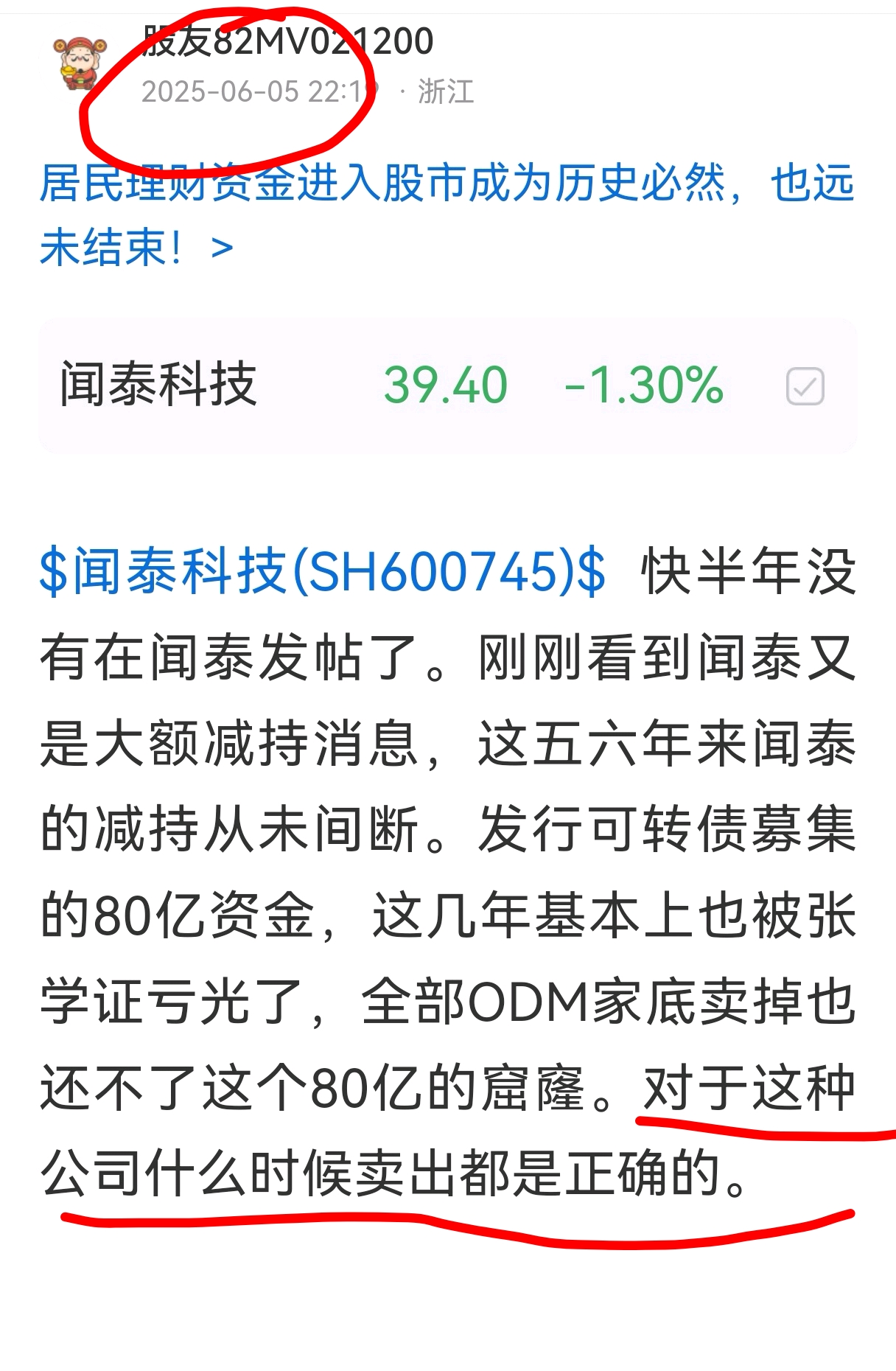 $闻泰科技(SH600745)$ 在东财有半年没发帖子过了,最后一个帖子是写给闻泰的。观点是任何时候卖出闻泰都是正确的。
