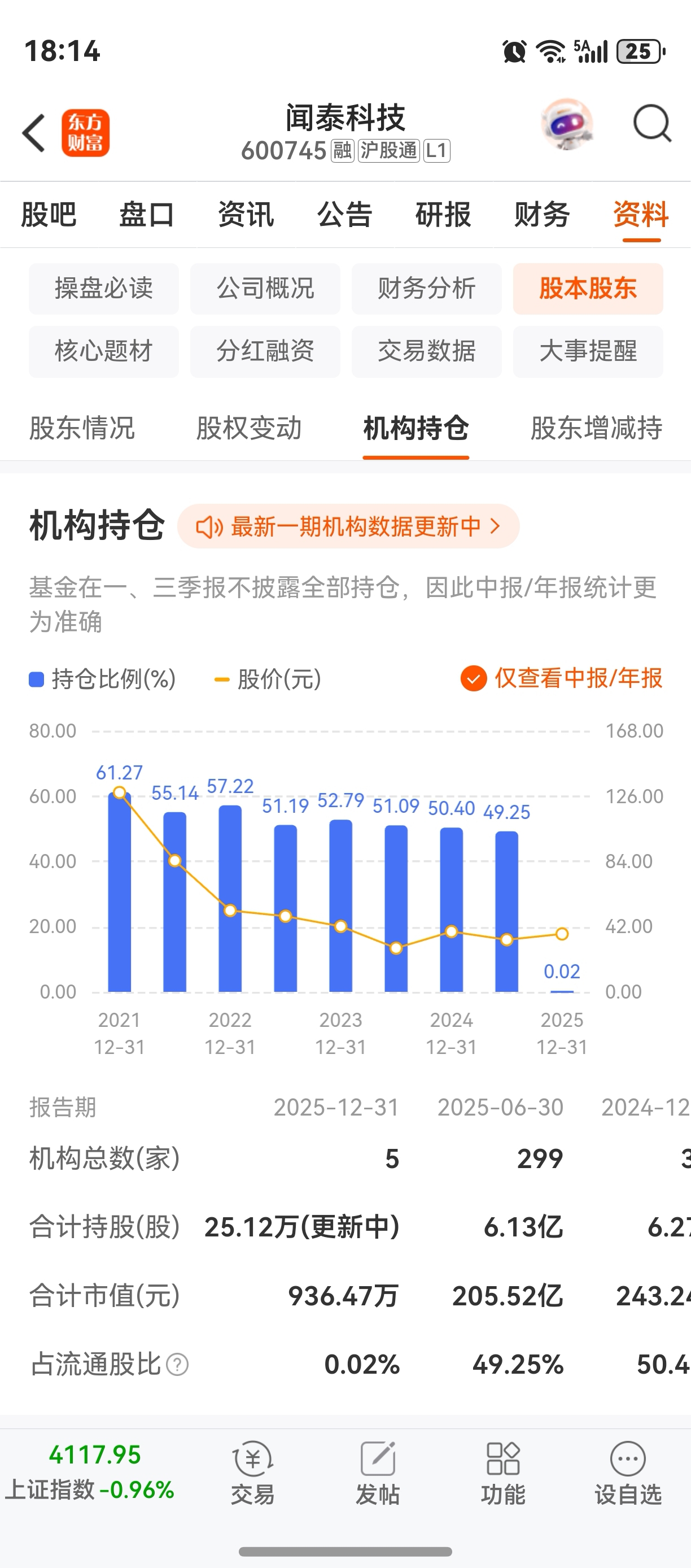 $闻泰科技(SH600745)$ 机构持仓只剩0.02%,各位怎么看?欢迎留言。