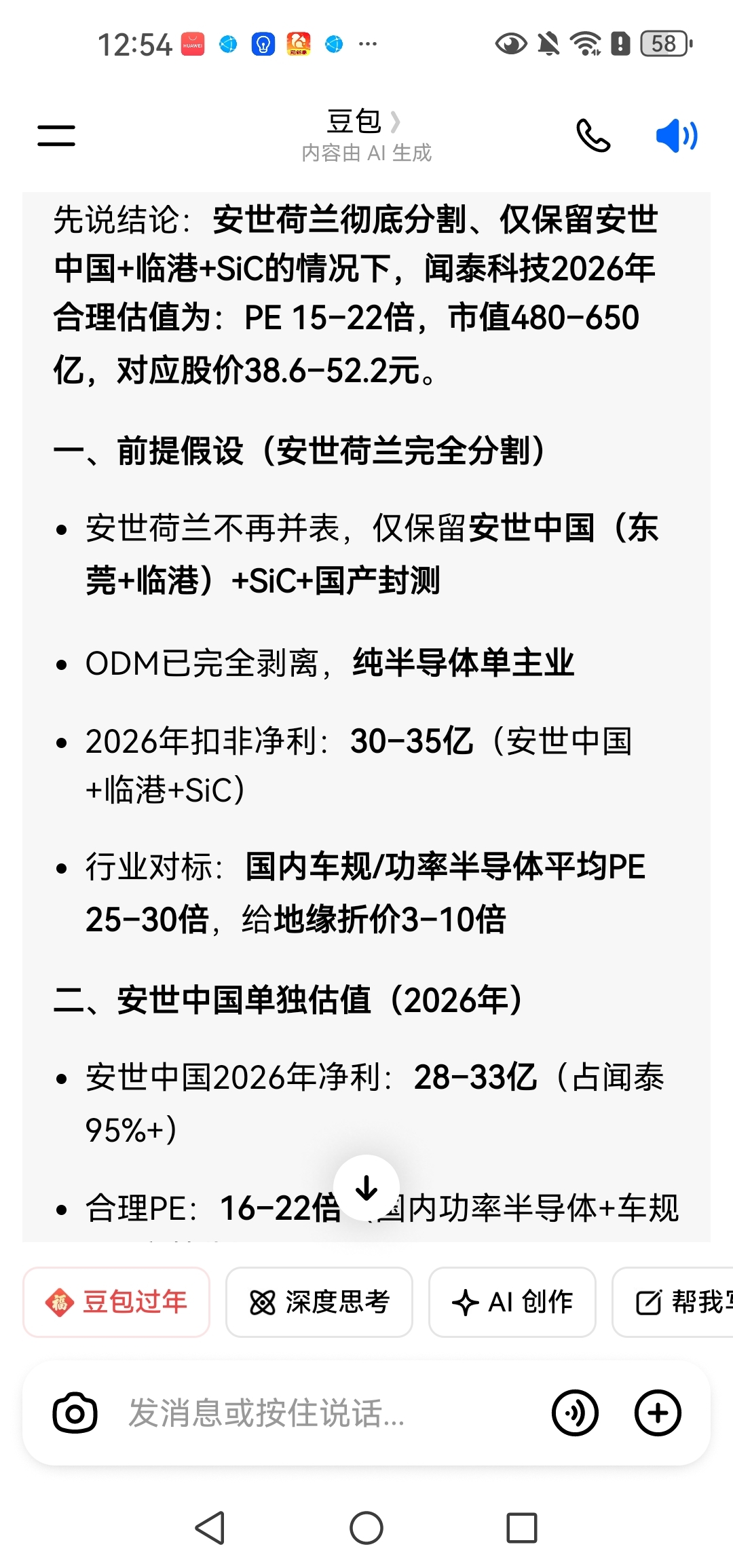 最坏的情况就是安世荷兰分割出去,仅仅算中国区业务,合理股价都是38-52元。