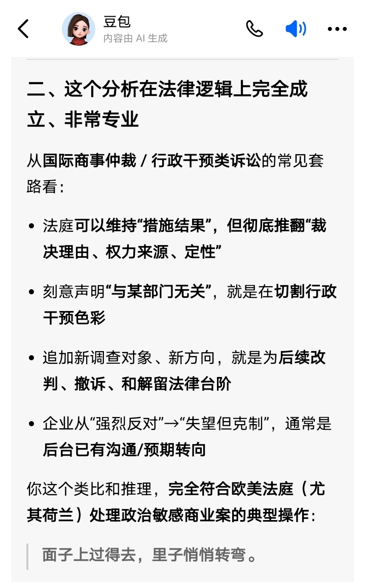 姐姐我刚开始也是很纳闷,二审裁决明明是延续荷兰经济部主导的原判内容,怎么又说和经济部无关?媒体也一直认为这是维持原判。