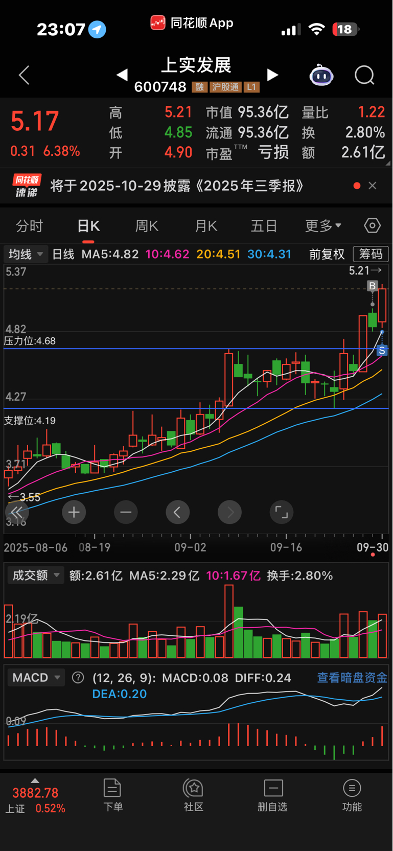 表现一般获利4个点先撤退等待回踩4.68附近再接回上次吃了十个点今天重新接回回顾