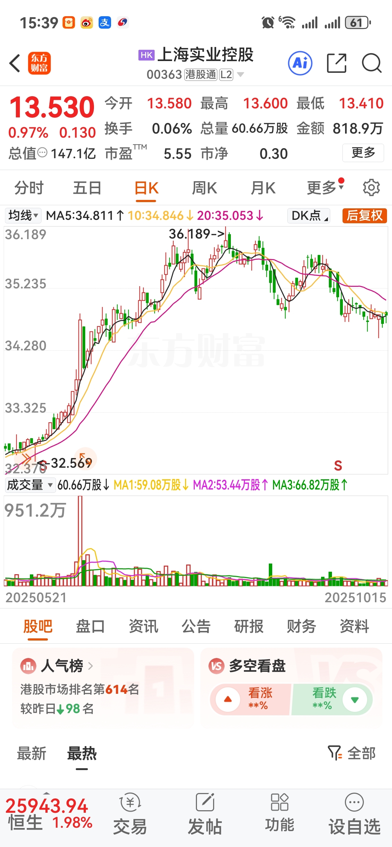 $上实发展(SH600748)$ 儿子板了,老子无动于衷不应该啊
