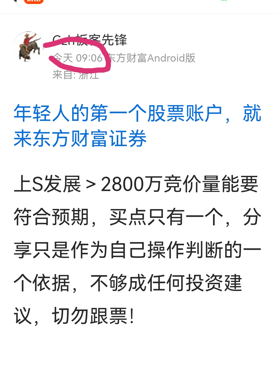 温馨提示: 1.根据《证券法》规定,禁止编造、传播虚假信息或者误导性信息,扰乱证券市场;2.用户在本社区发表的所有资料、言论等仅代表个人观点,与本网站立场无关,不对您构成任何投资建议。用户应基于自己的独立判断,自行决定证券投资并承担相应风险。《东方财富社区管理规定》