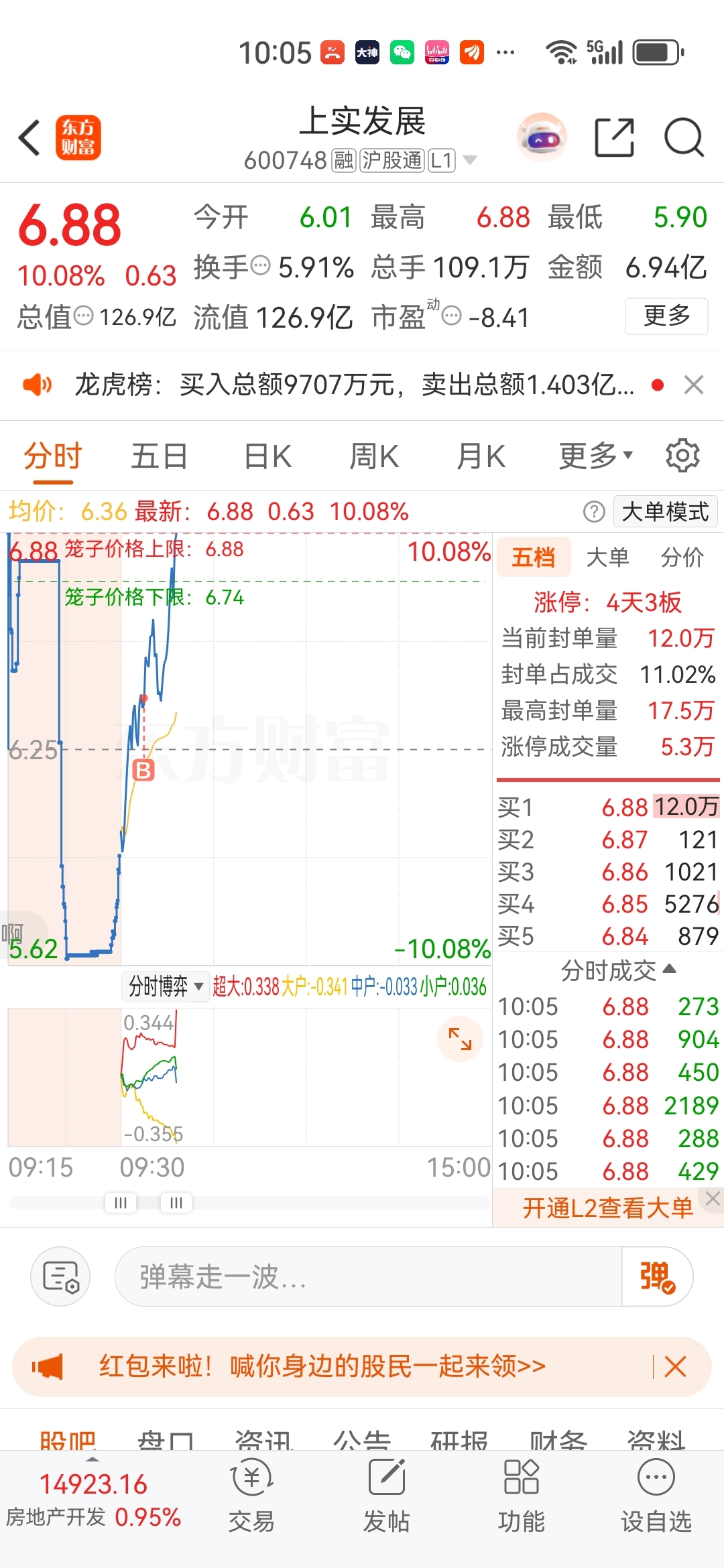 今天大盘很强,红4000+,那么上周五因大盘大跌被错杀的三板上实发展,今天就有反
