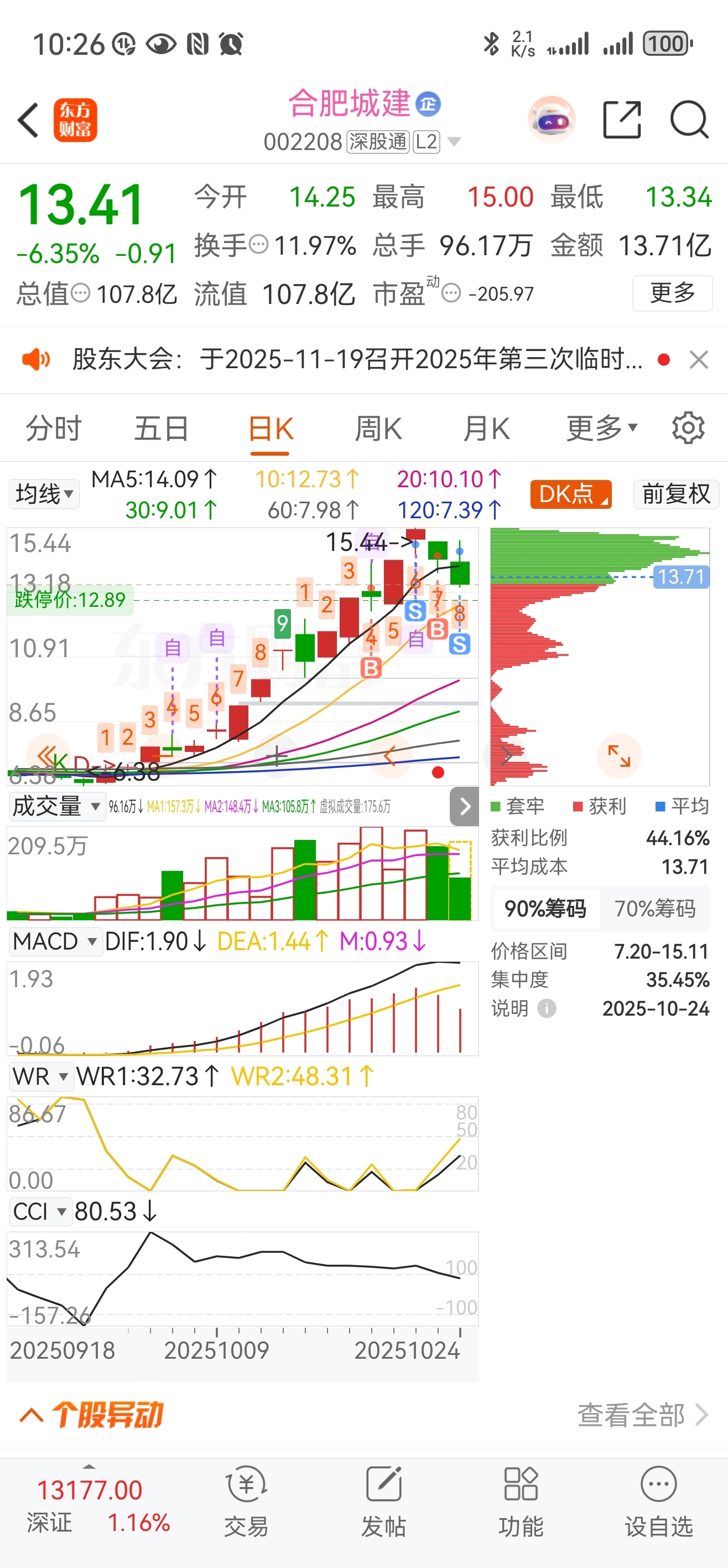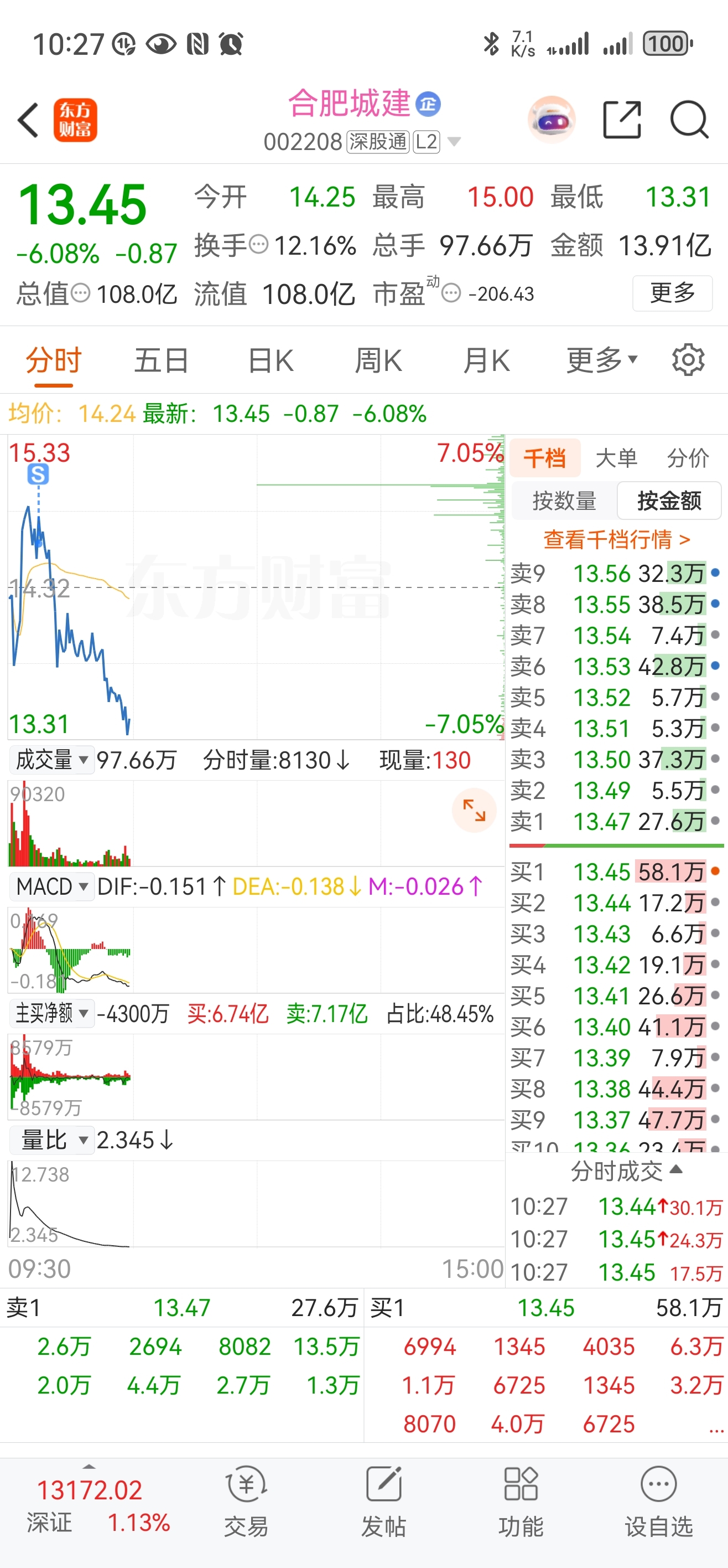 合肥城建两次逃顶,但重仓的上实发展没有减,唉,晕,昨天开始跌0.1买入1000股
