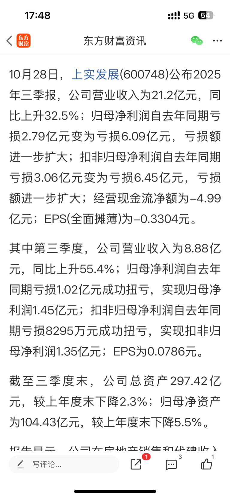 $上实发展(SH600748)$ 第三季度不错,明天华建止跌的话,上实应该不错