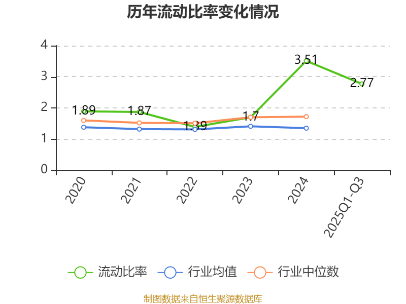 2025年前三季度,公司流动比率为2.77,速动比率为0.71。