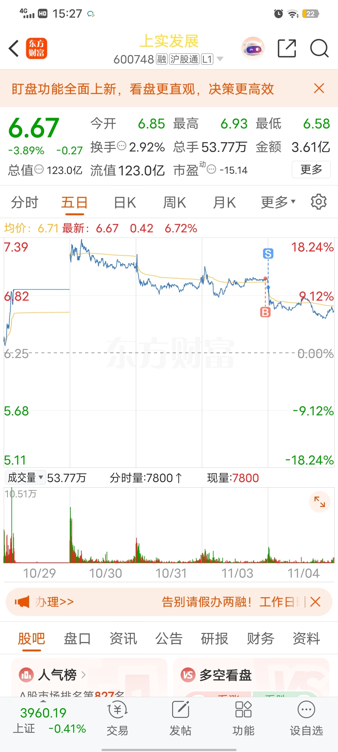 $上实发展(SH600748)$ 知行合一,开盘就卖