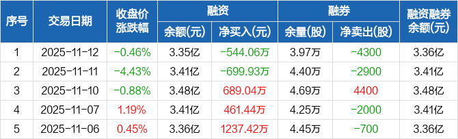 上实发展:融资净偿还544.06万元,融资余额3.35亿元(11-12)