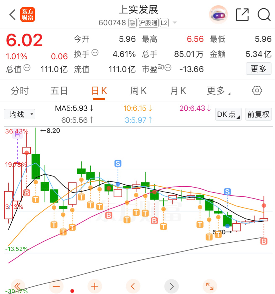 $上实发展(SH600748)$ 这一个月白T,一天就回去
