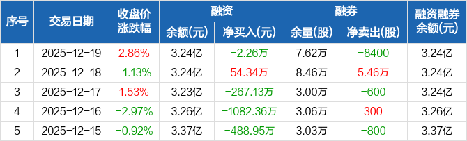 上实发展:融资净偿还2.26万元,融资余额3.24亿元(12-19)