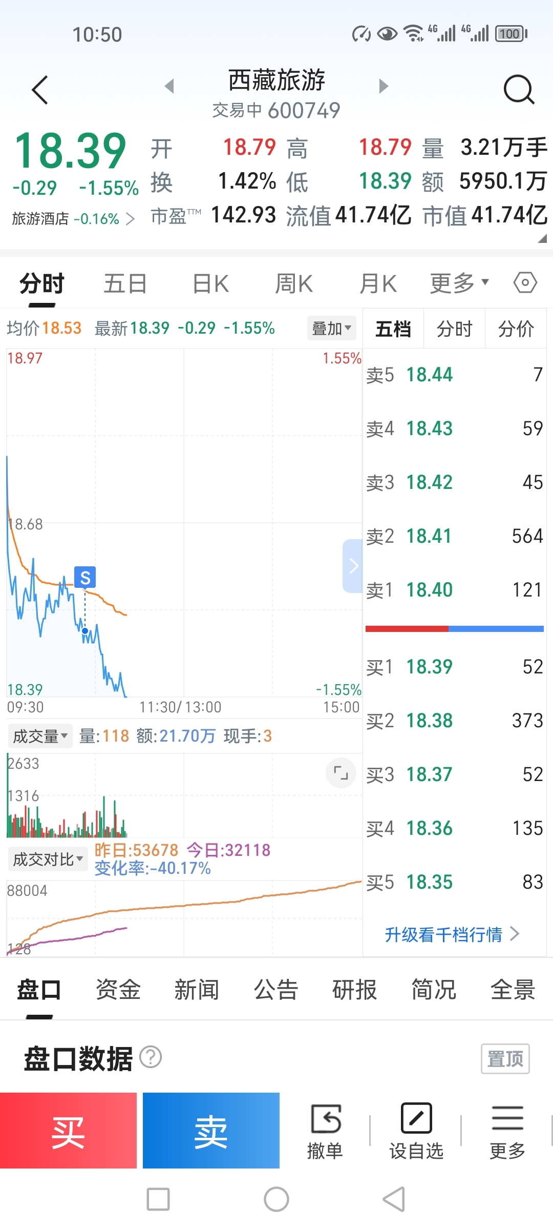 $西藏旅游(SH600749)$ 割了,你上去吧