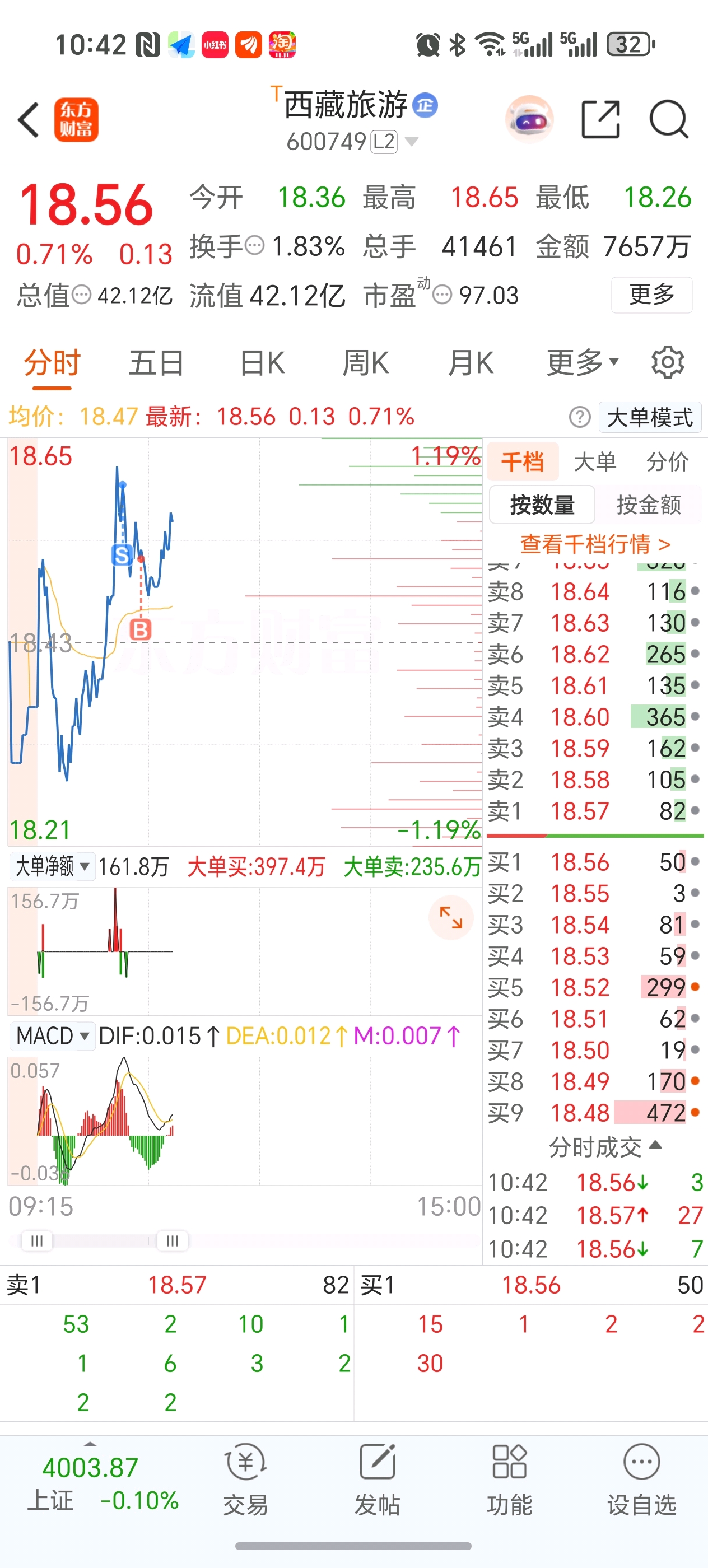 $西藏旅游(SH600749)$ 狠狠的T了几分钱。