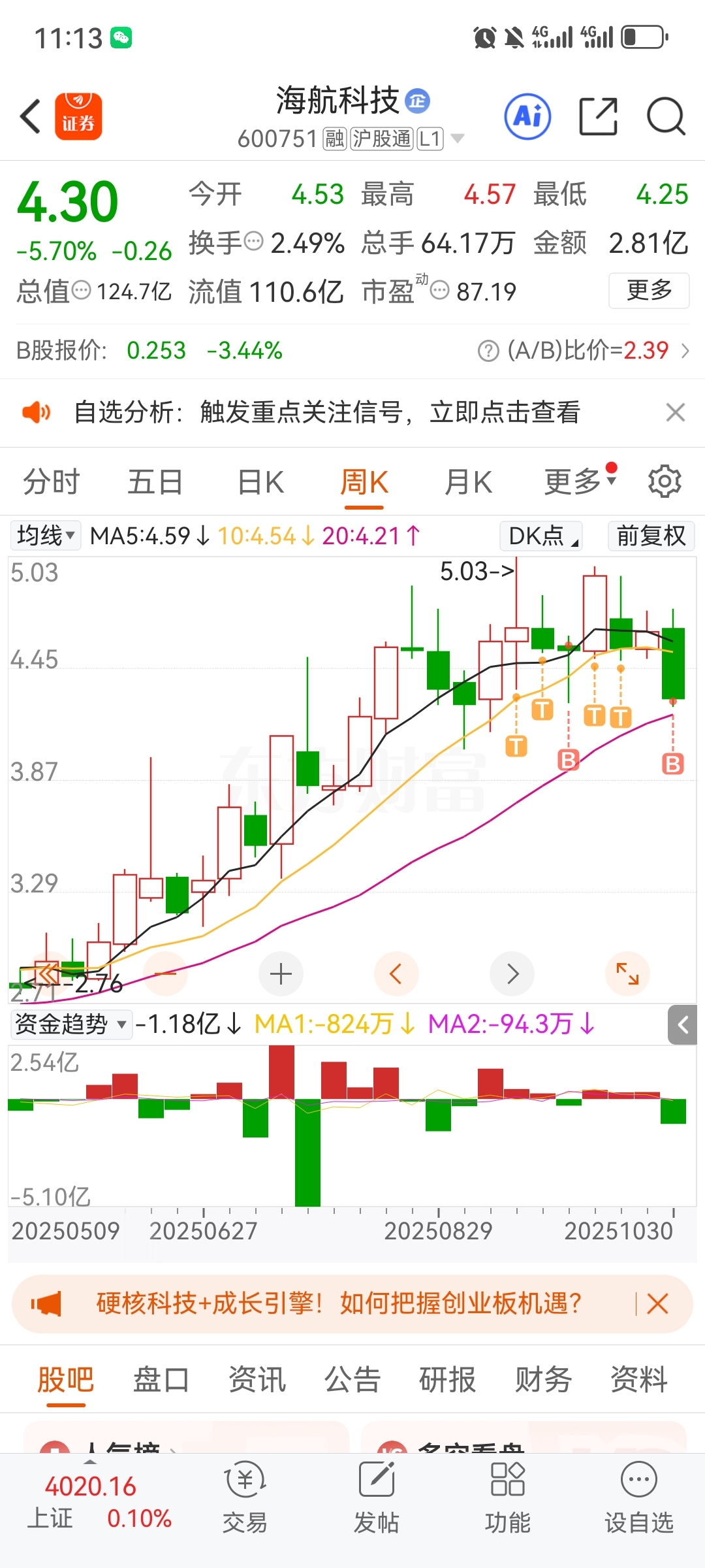 $海航科技(SH600751)$ 资金提前跑路!我成功接盘
