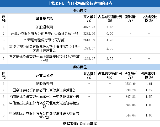沪股通现身龙虎榜,海航科技涨停(11-10)