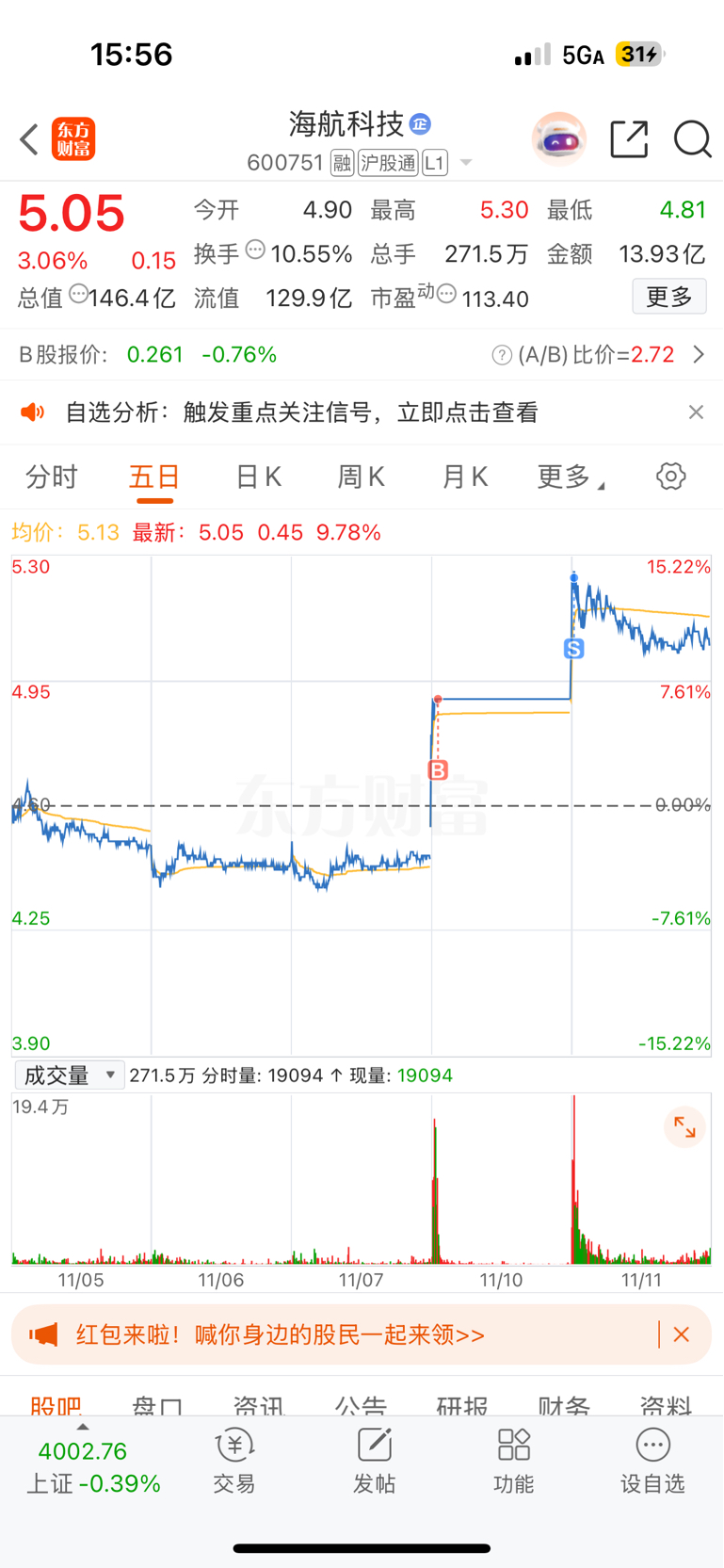 $海航科技(SH600751)$ 平平无奇的一天