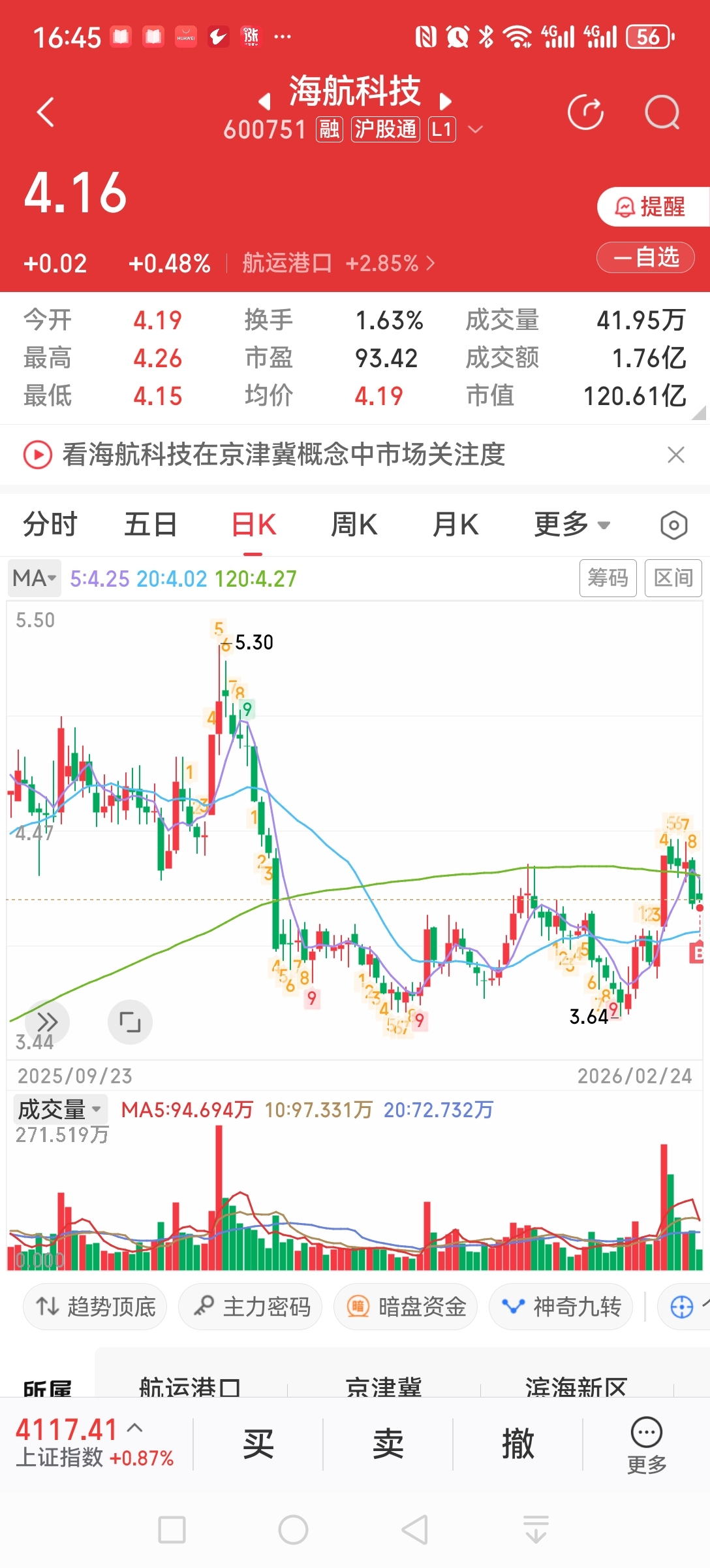 $海航科技(SH600751)$ 买38手试试水