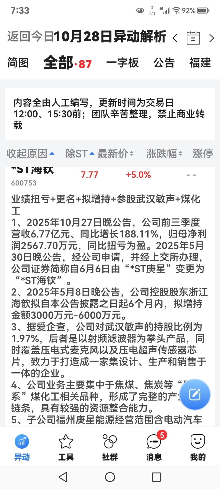 $*ST海钦(SH600753)$$*ST正平(SH603843)$$*ST亚振