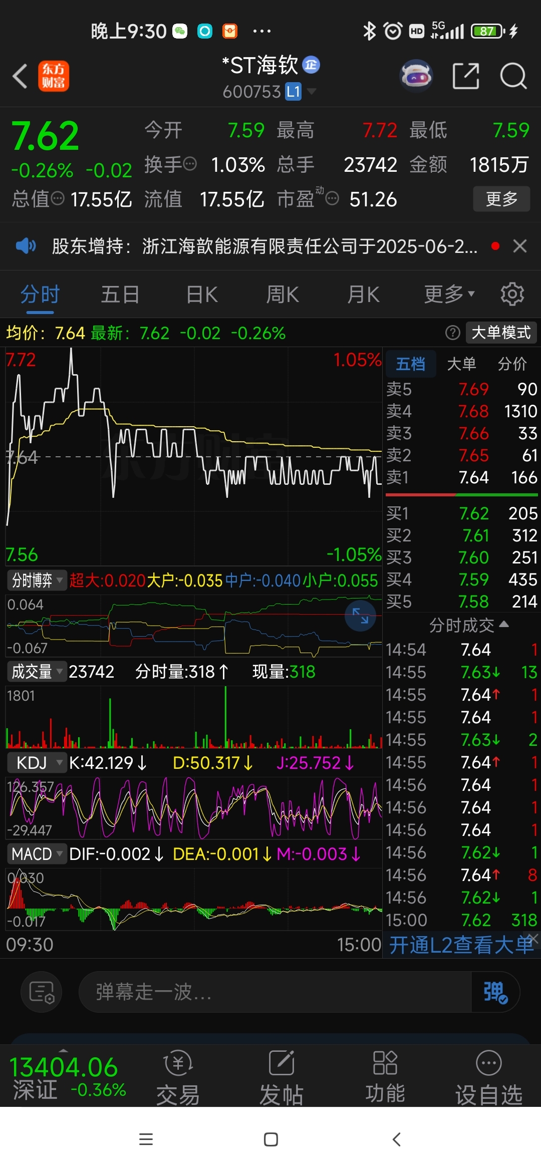 $*ST海钦(SH600753)$ 看走势磨磨唧唧的,怎么感觉今天进来了太多资金,看周一吧!总感觉要开始涨了