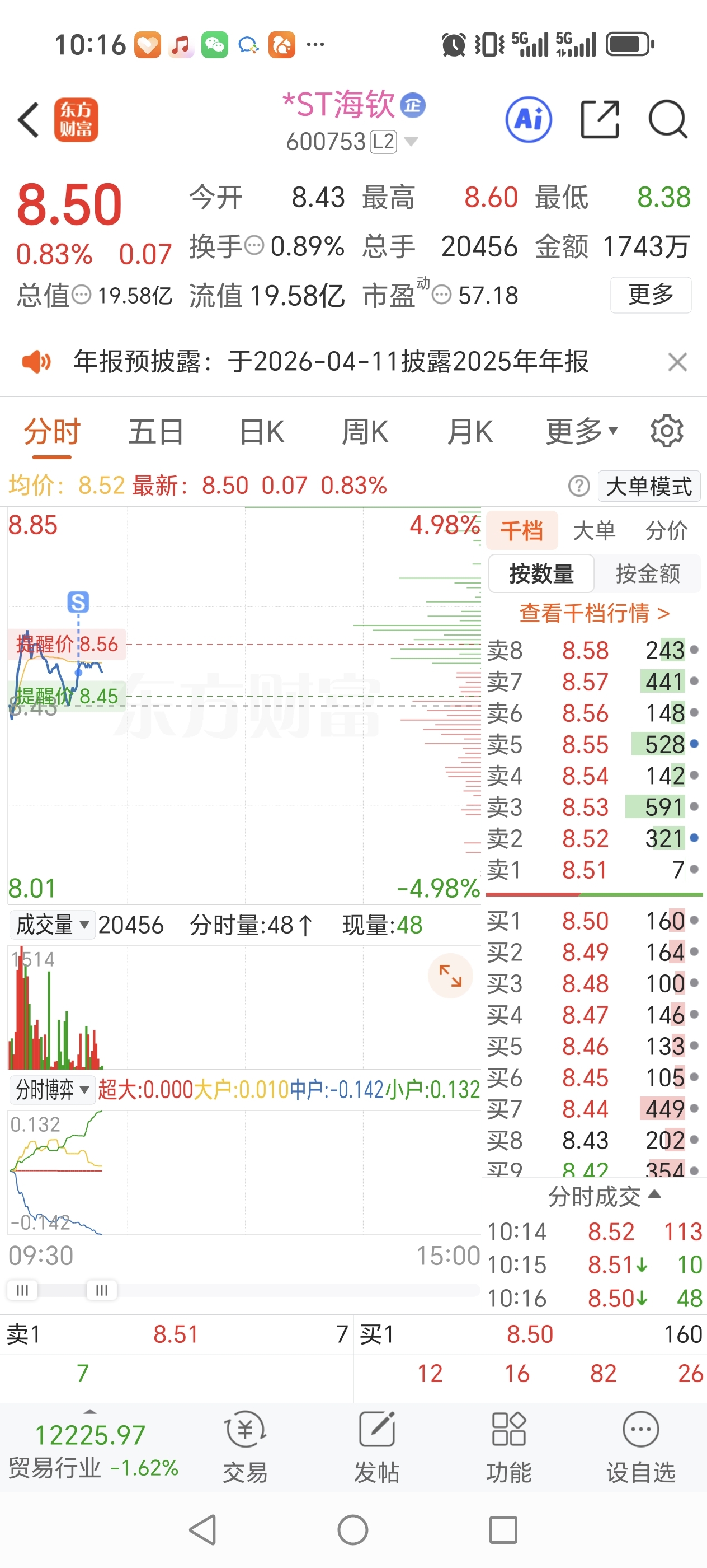 $*ST海钦(SH600753)$ 昨天8.3进,8.5跑了,剩下的给主力赚吧,资金转仓需要,看盘面应该还会拉上一些,有机会再进