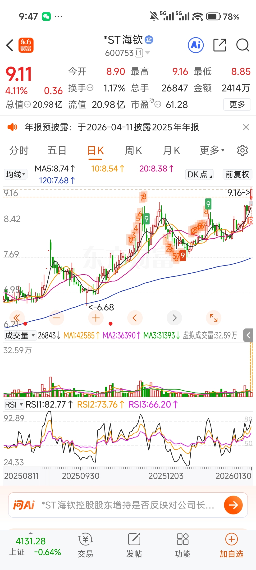 $*ST海钦(SH600753)$ 这么明显的主升浪还看不出来吗