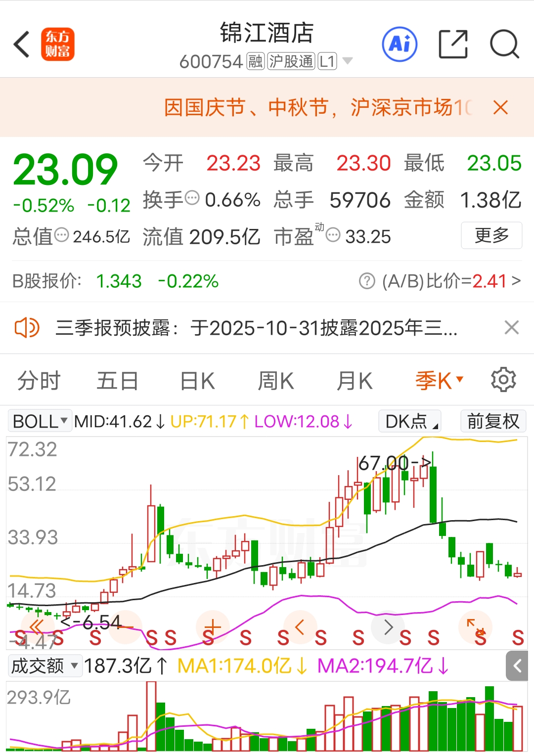 $锦江酒店(SH600754)$ 不要在意一时一刻的涨跌,看好第四季度,节后再战。