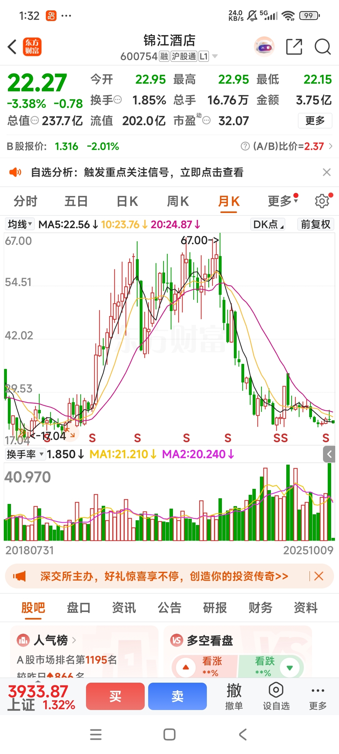 锦江酒店今年这个走势可能是要退市了,今天都上3900点还走成这样?