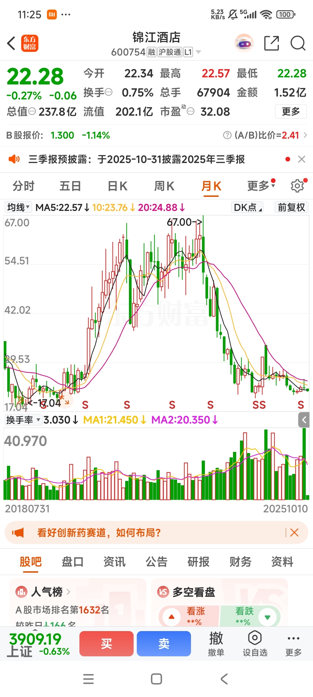 $锦江酒店(SH600754)$ 锦江酒店今年这个走势可能是要退市了,坚决不补仓。
