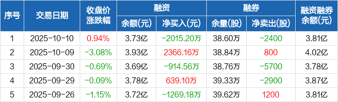 锦江酒店:融资净偿还2015.2万元,融资余额3.73亿元(10-10)