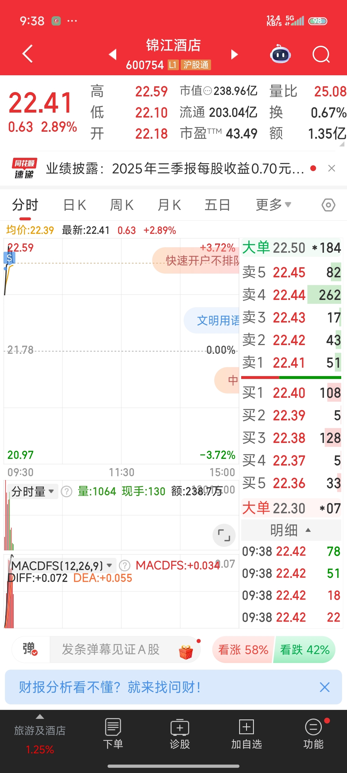 前两天买锦江酒店那么多不看好。今天赚钱走了!