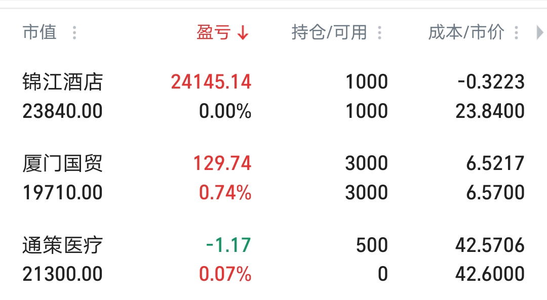 $锦江酒店(SH600754)$ 留了1000股,新入手$通策医疗(SH600763)$