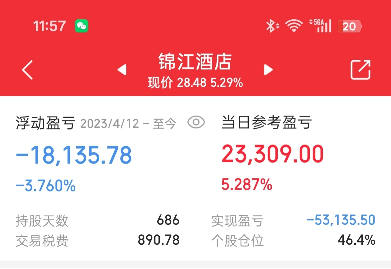 $锦江酒店(SH600754)$ 三年了 终于看到回本的希望了