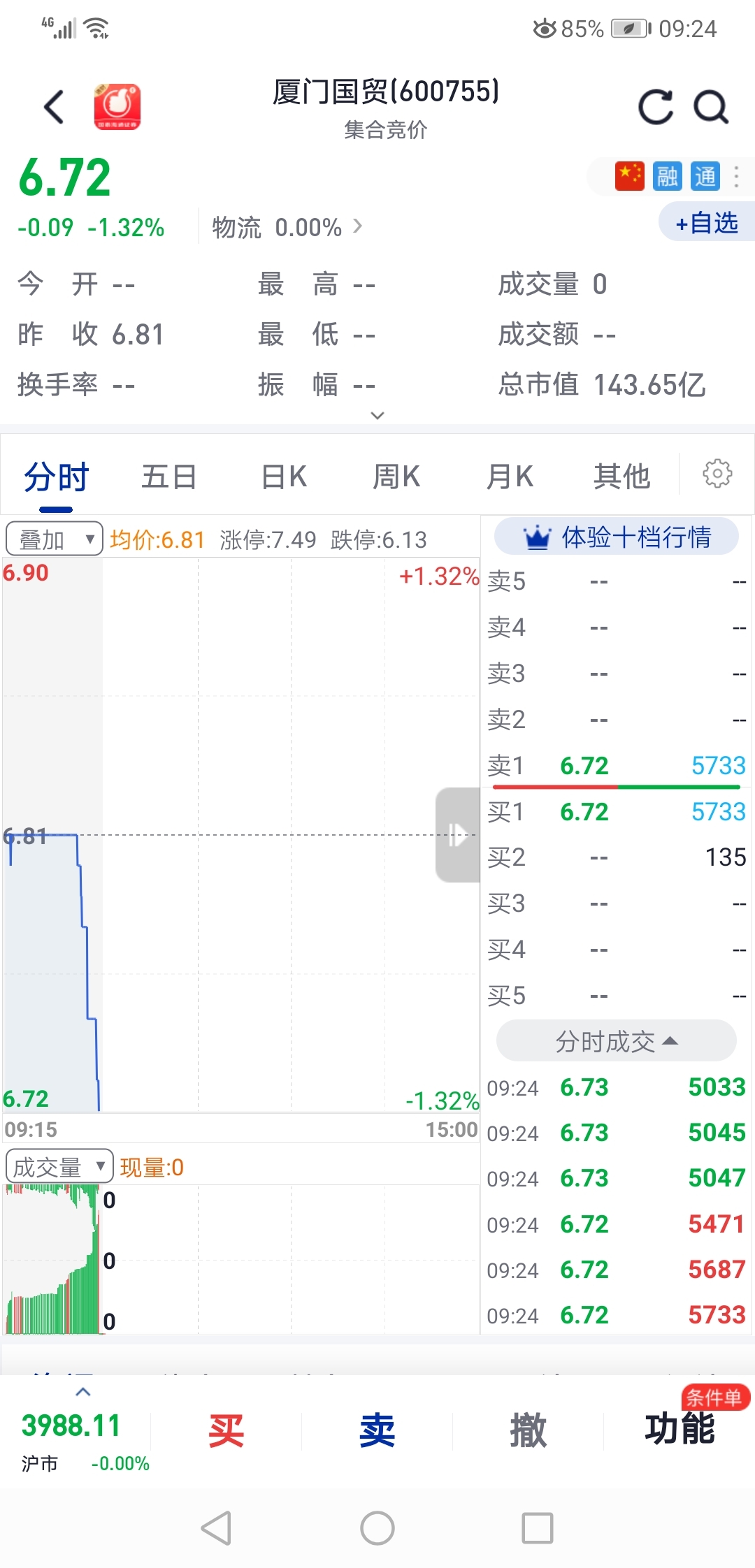$厦门国贸(SH600755)$ 早盘集合竞价