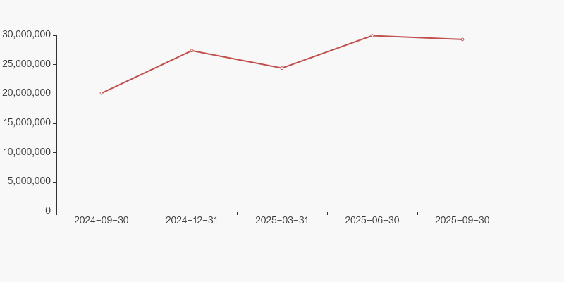 截至2025年9月30日,公司最新总股本为21.38亿股,其中流通股本为21.32亿股。户均持有流通股数量由上期的2.6万股上升至2.65万股,户均流通市值16.4万元。