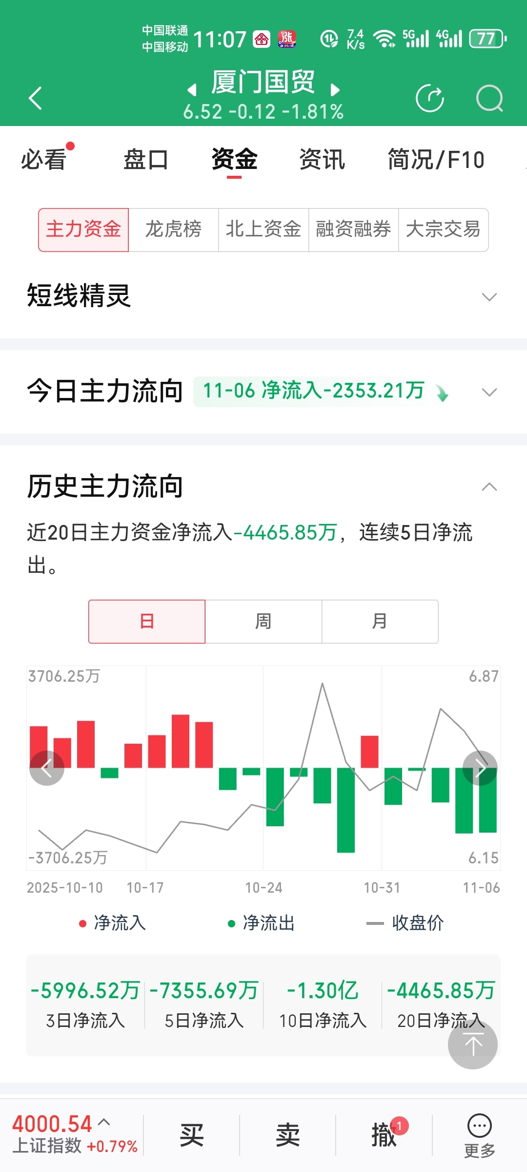 $厦门国贸(SH600755)$ 连续五天主力资金流出。
