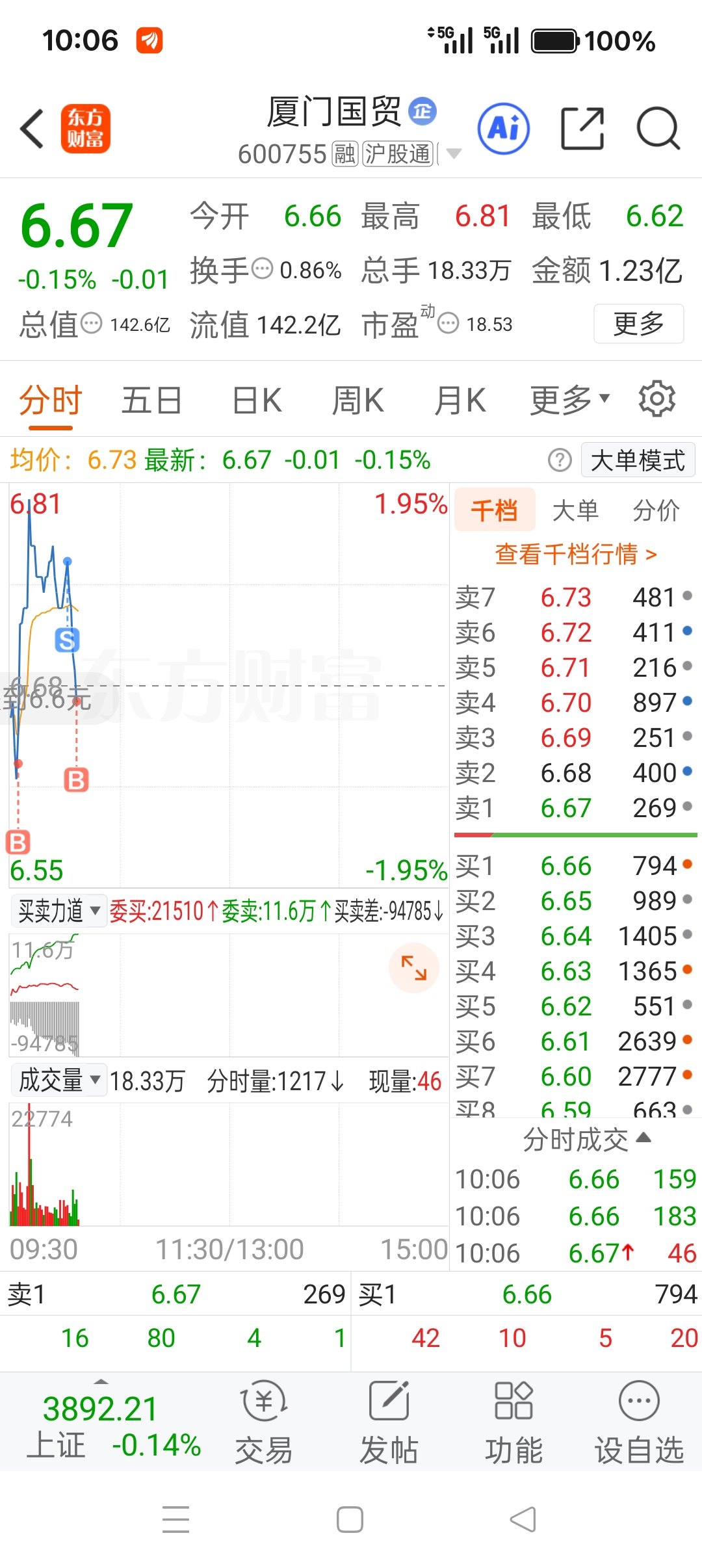 $厦门国贸(SH600755)$ 接回来,吃差价了