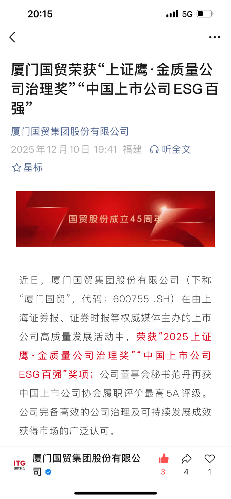 $厦门国贸(SH600755)$ 奖拿那么多也让我们股东开心开心啊,飞起来