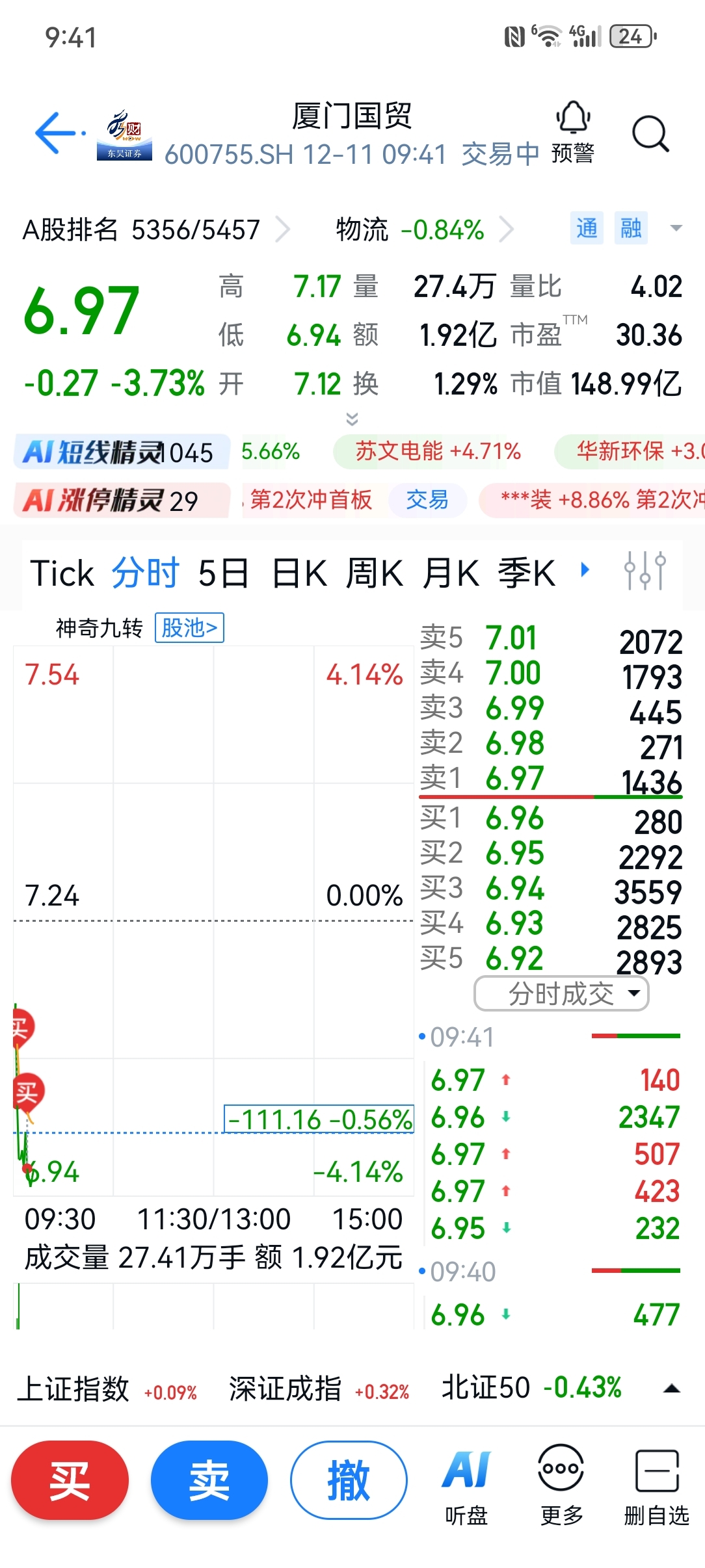 $厦门国贸(SH600755)$ 兄弟们,就是买得有点早。放心大胆干
