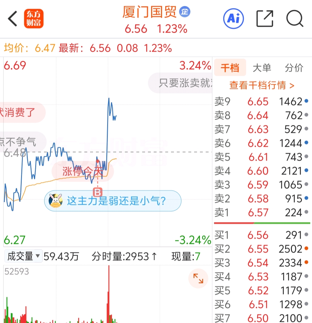 $厦门国贸(SH600755)$ 这主力说他弱吧,股价打起来是眼都不眨一下。说他强吧,扭扭捏捏的,一点也不干脆。