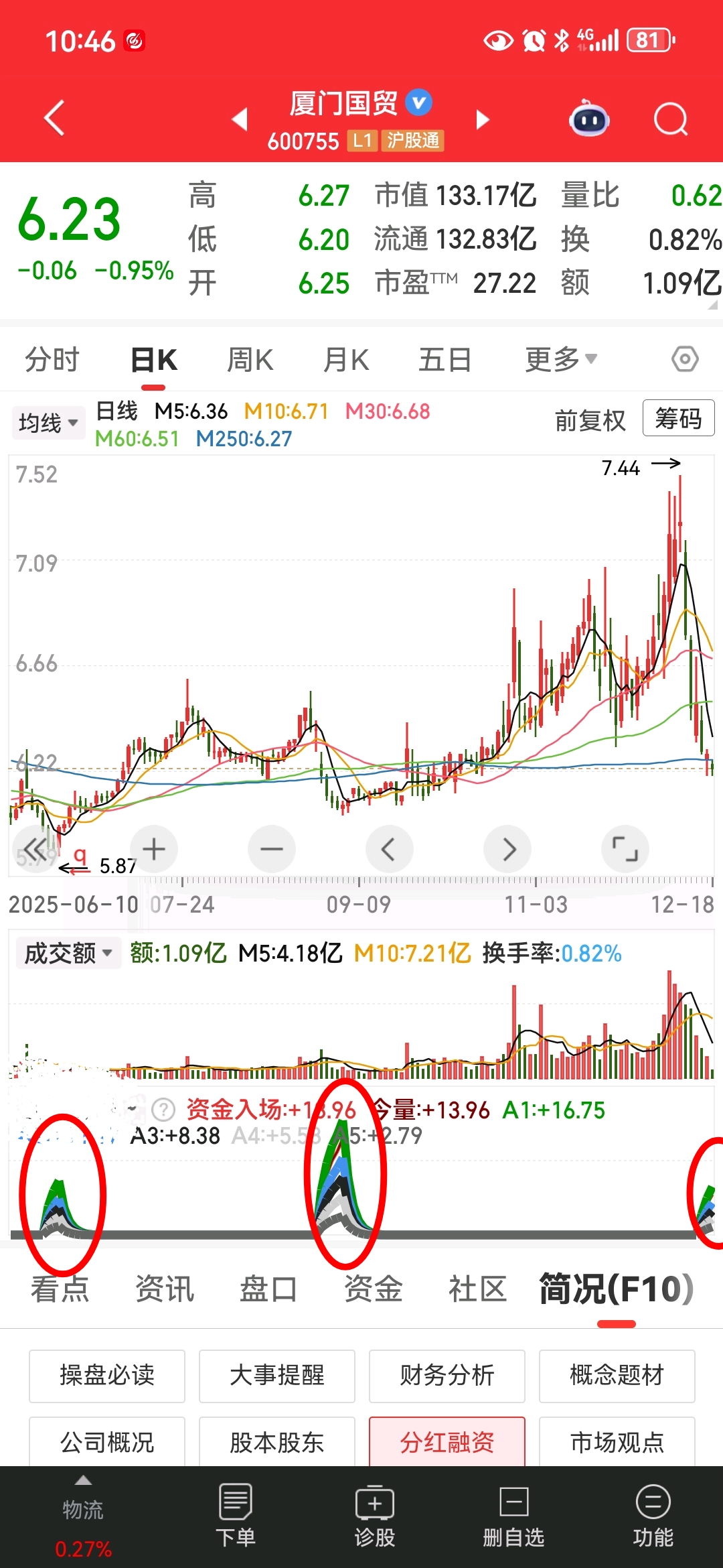 $厦门国贸(SH600755)$ 6.23是底部区域,胜算更大