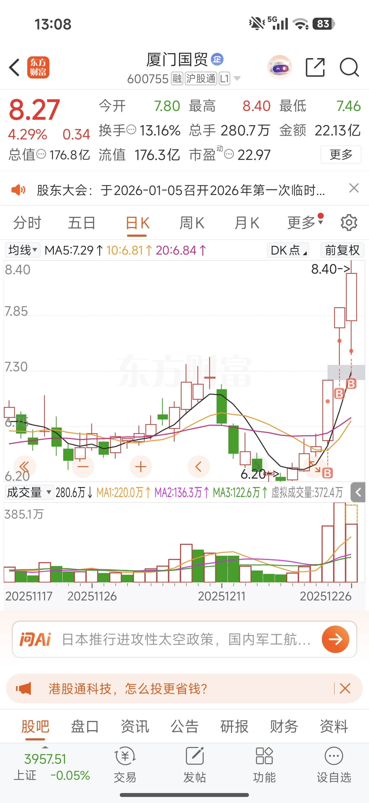 $厦门国贸(SH600755)$ 加仓就是了,怕个锤子