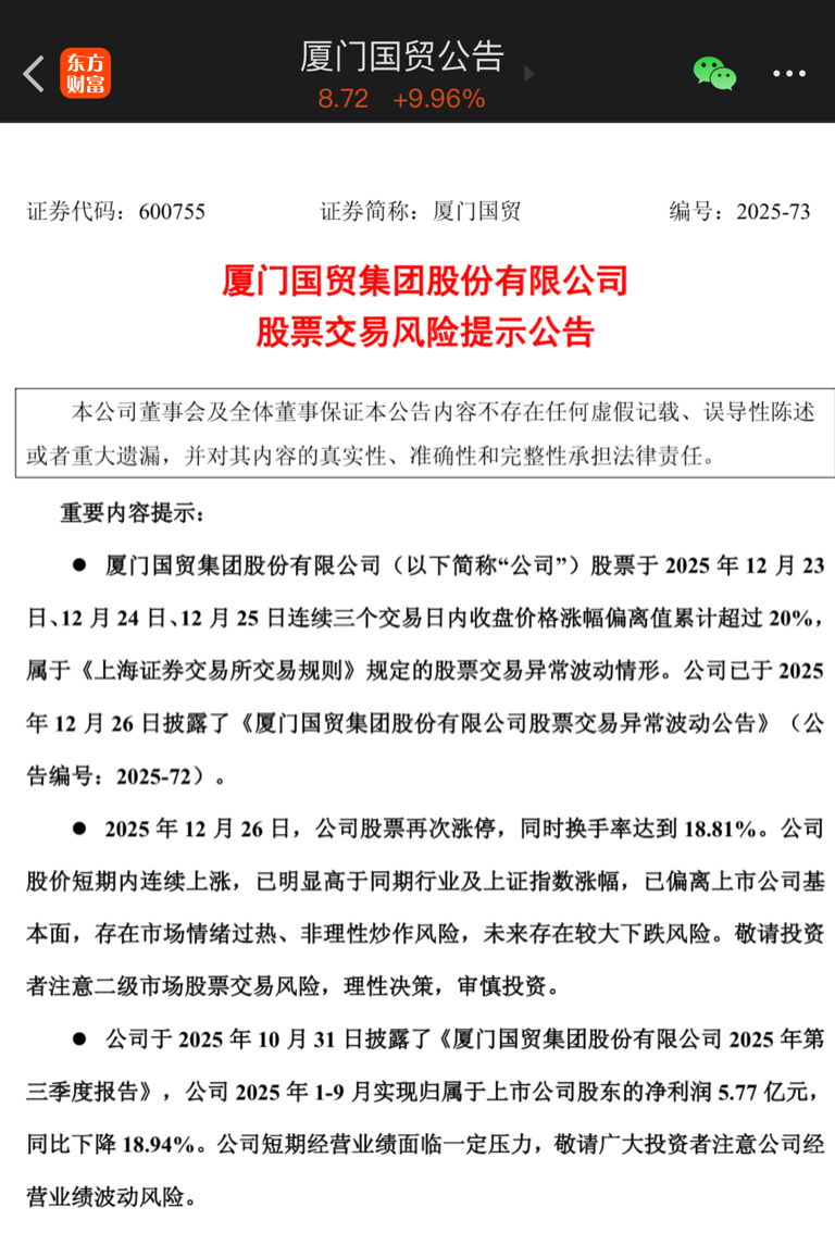 $厦门国贸(SH600755)$ 第二次发风险提示公告(妖股通行证)
