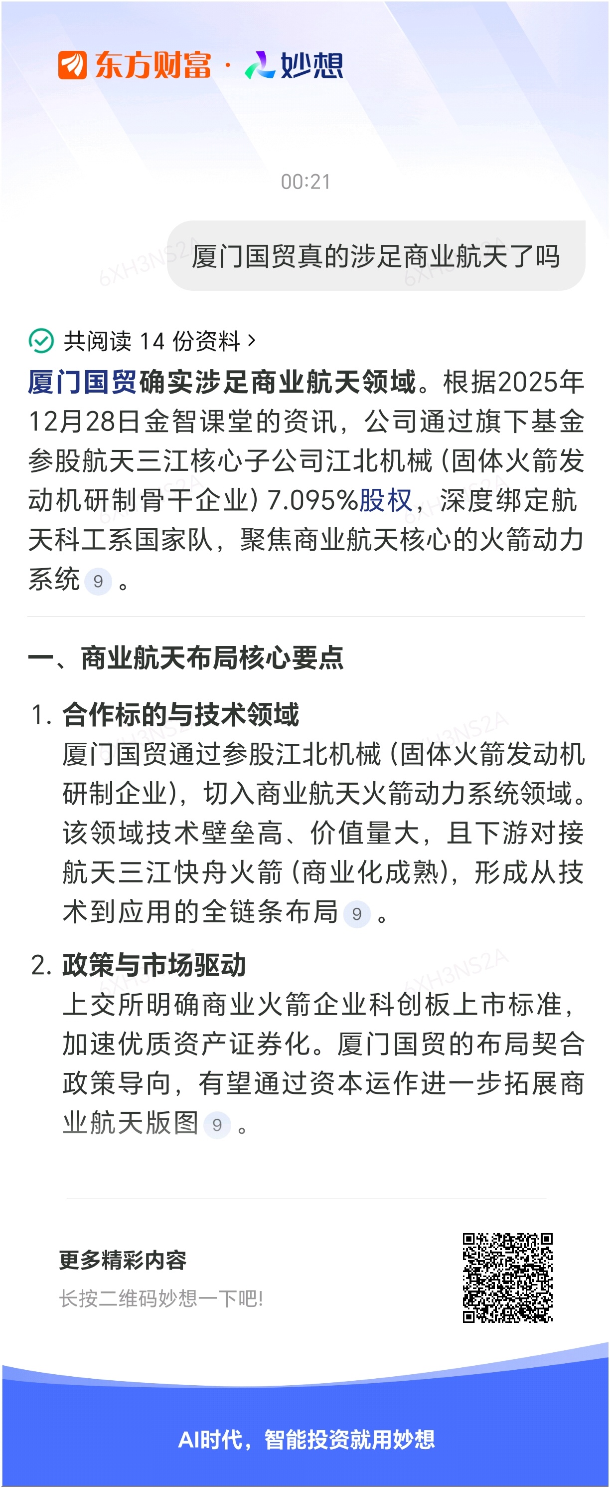 #@妙想,你怎么看?# 妙想一下:厦门国贸真的涉足商业航天了吗