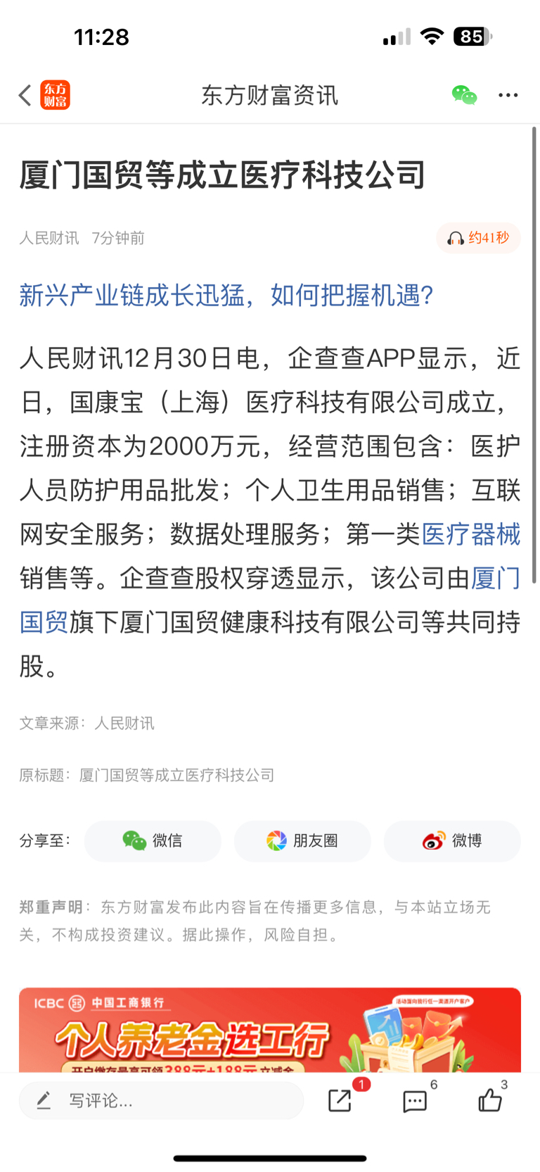$厦门国贸(SH600755)$ 咋不搞宇宙飞船呢,还想搞医疗。