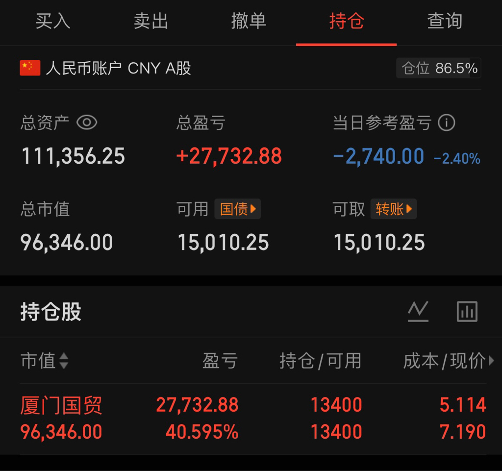 25年成绩单,期待26年的总资产达到20万,能否达到就全看厦门国贸的表现了...
