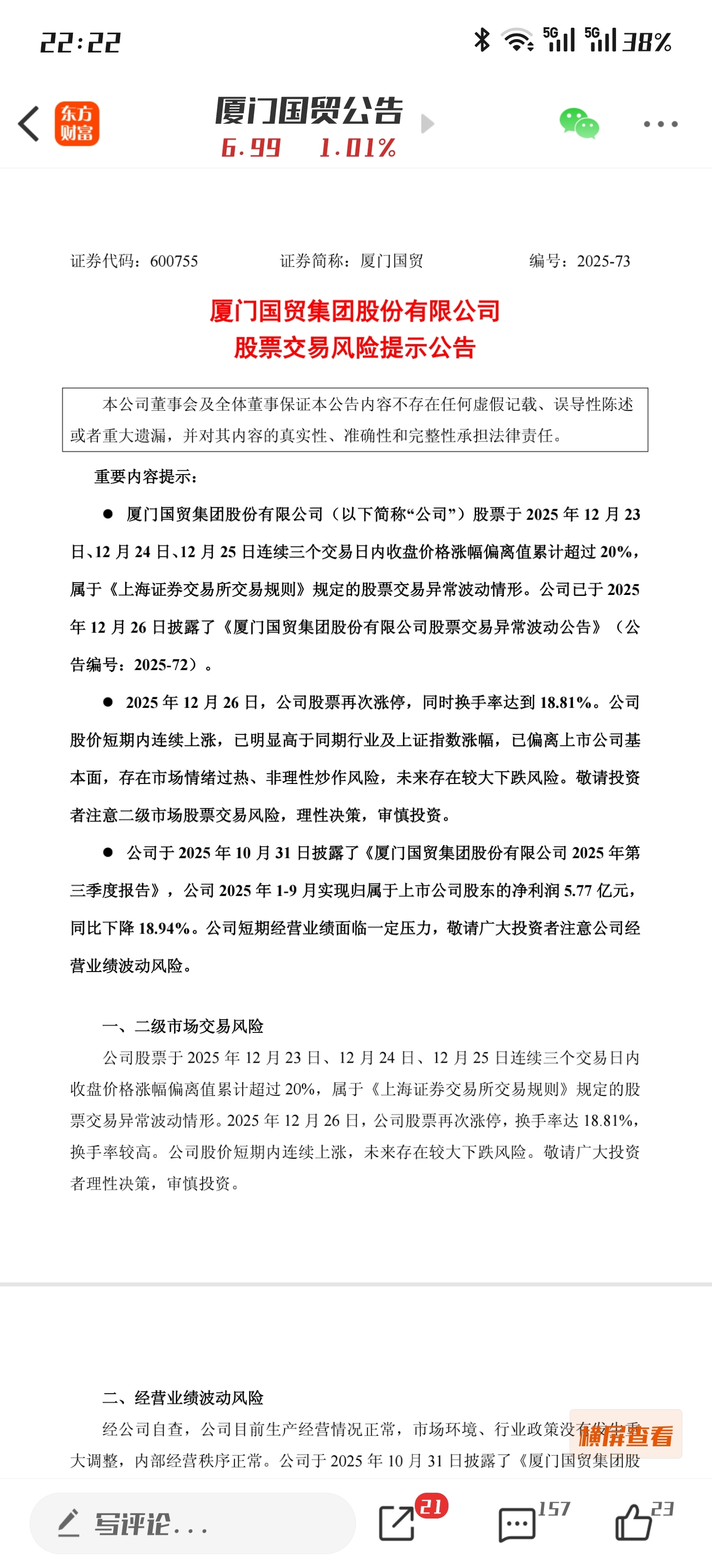 $厦门国贸(SH600755)$ 这票8.72的时候,董秘风险提示严重偏离公司基本面,是不是可以理解为这票绝对不值8元?