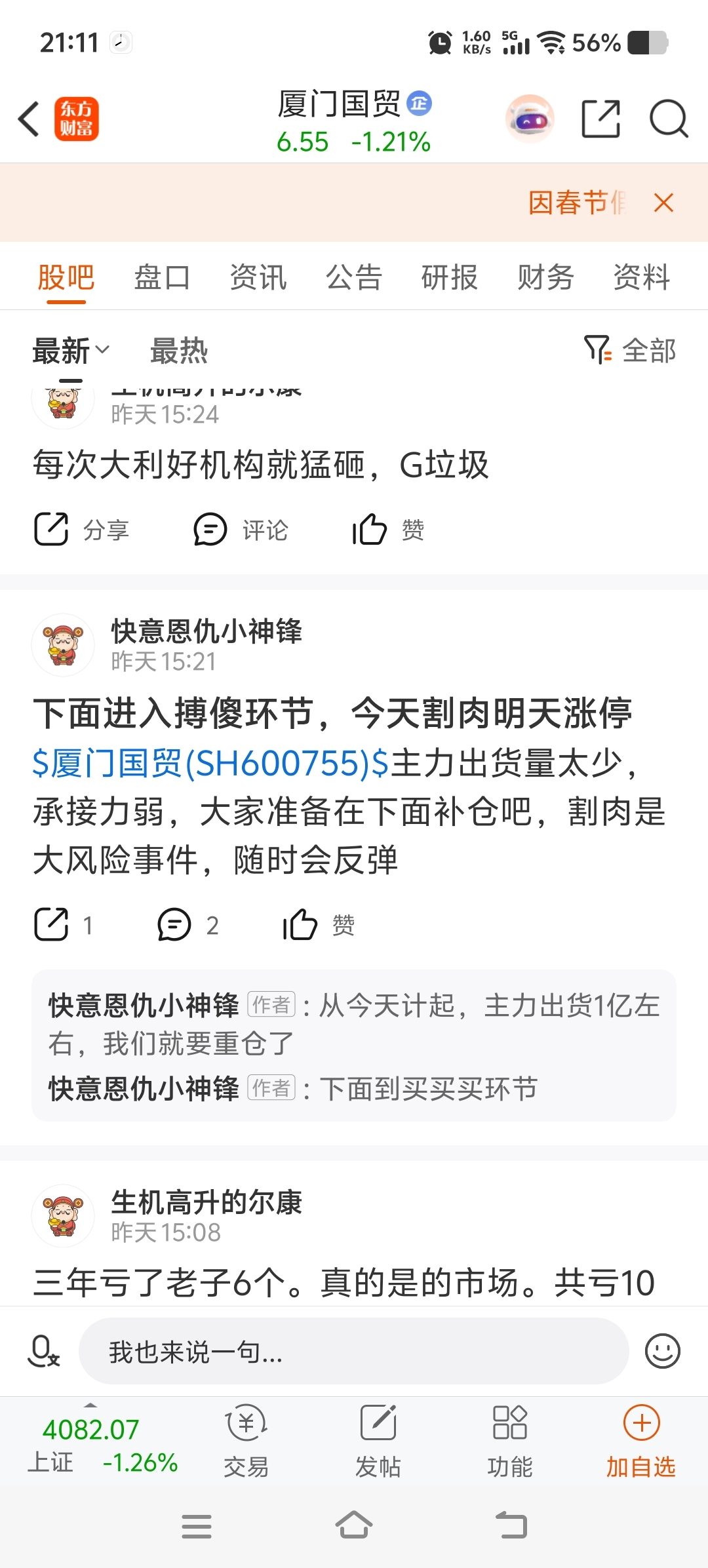$厦门国贸(SH600755)$ 股吧朋友们一定注意这人,这家伙是托,前几日刚在中国化学天天唱多,纯托,大家注意